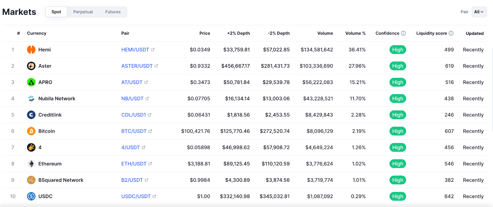 Following Hemi’s spot and perpetual listings on Aster DEX, traders have generated over $134 million in cumulative volume during the campaign. Hemi now stands at the top of Aster’s token chart in terms of total volume traded. Now complete, the $400,000 reward pool, distributed based solely on trading activity, has driven steady participation and is set for distribution.